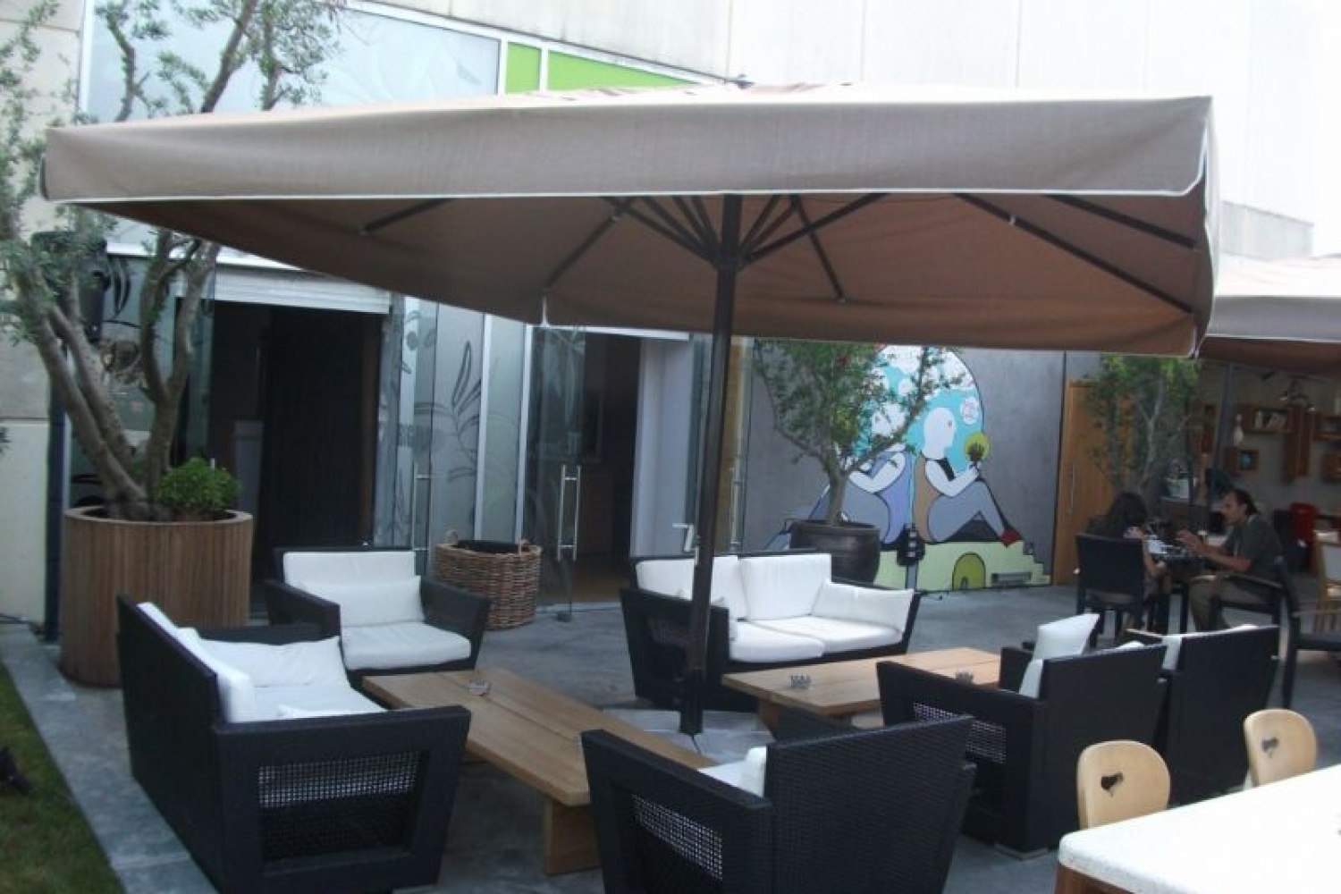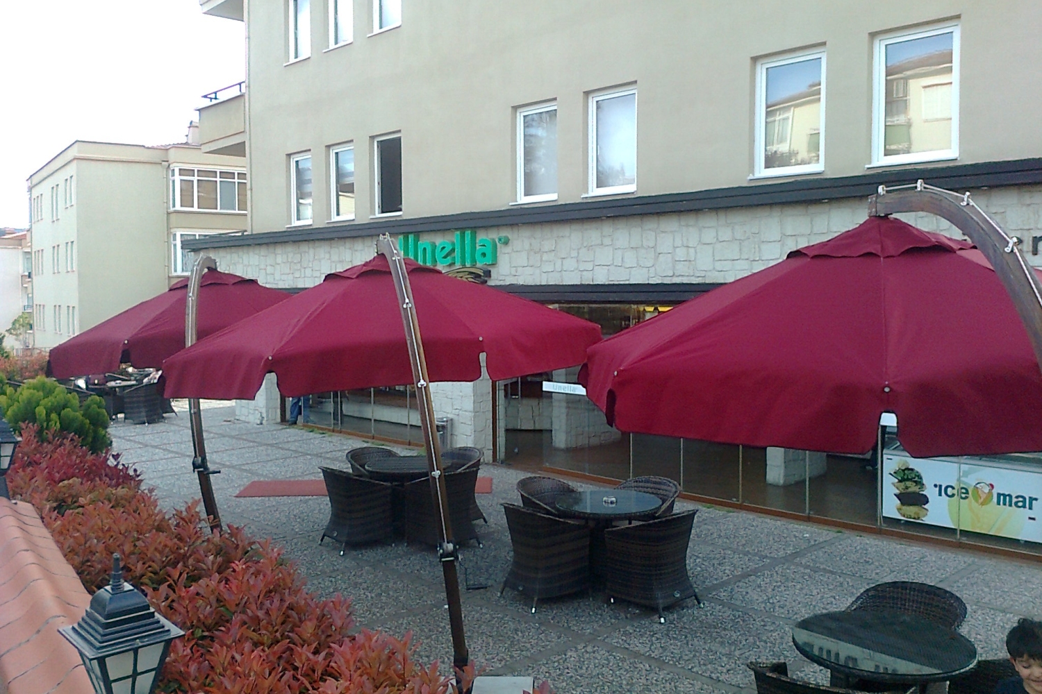 Ahşap ve metal (alüminyum) şemsiye iskeletleri kare ve yuvarlak olarak üretilir. Şemsiyenin ebadına göre 8 ve 10 kollu şeklinde gövde kalınlığı değişiklik gösterir. Sabit ve tekerlikli ayaklara sahiptir. Zengin renk ve kumaş seçeneğine sahiptir ve reklam baskısı yapılabilir.